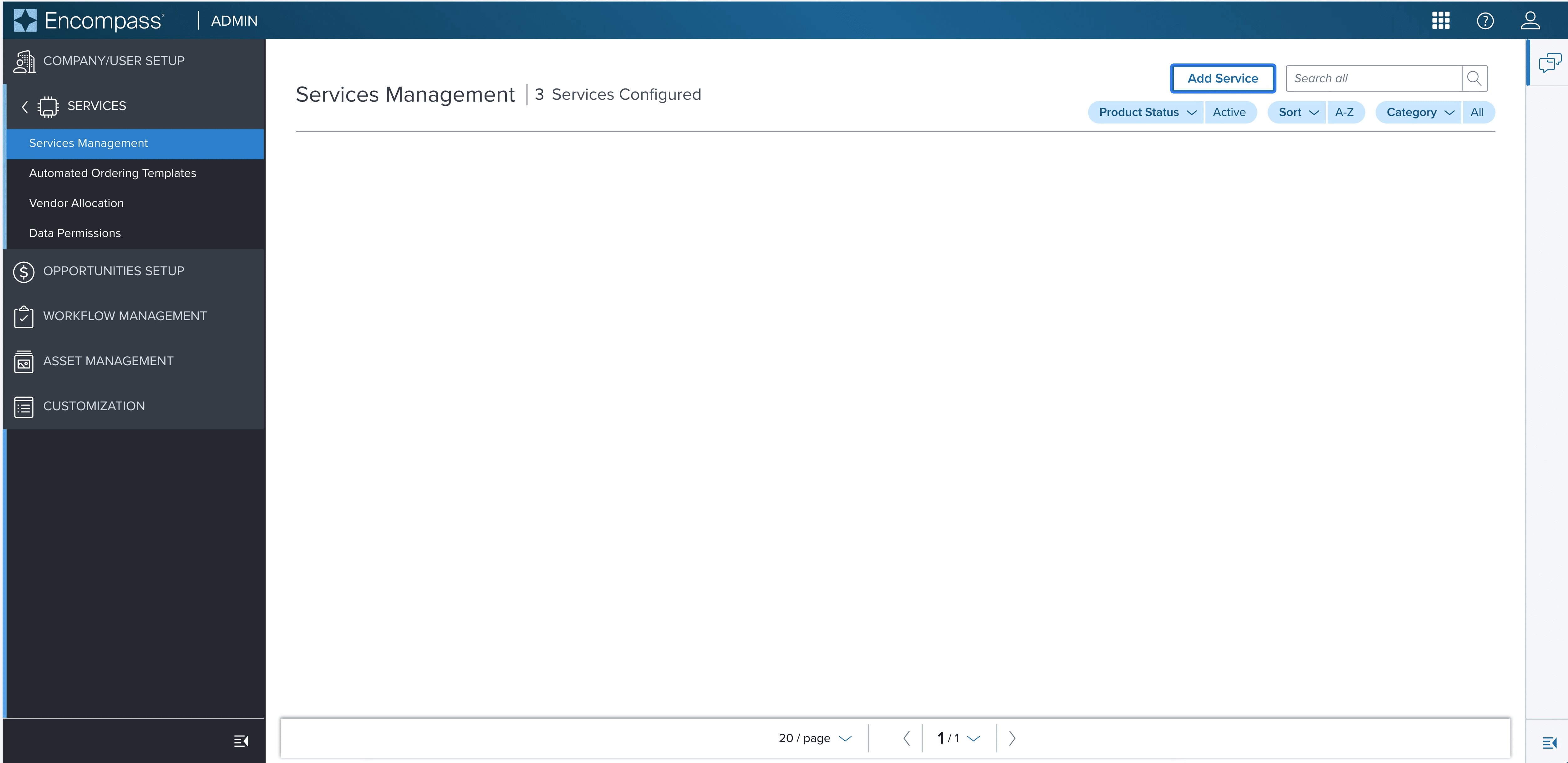 To access Pointservices within the Encompass Application, specific configuration tasks must be accomplished e.g., adding Encompass Users for access, enabling Pointservices.com EPC to show up in the Providers list, etc. The Encompass Admin Portal is where you can configure Pointservices Encompass Integration. Pointservices.com EPC is in the Additional Services category section. Open the Encompass Admin Portal via the Encompass Desktop Application or an Internet Browser then select <SERVICES>, this wil open the screen required to add new partner services to your Encompass installation.
